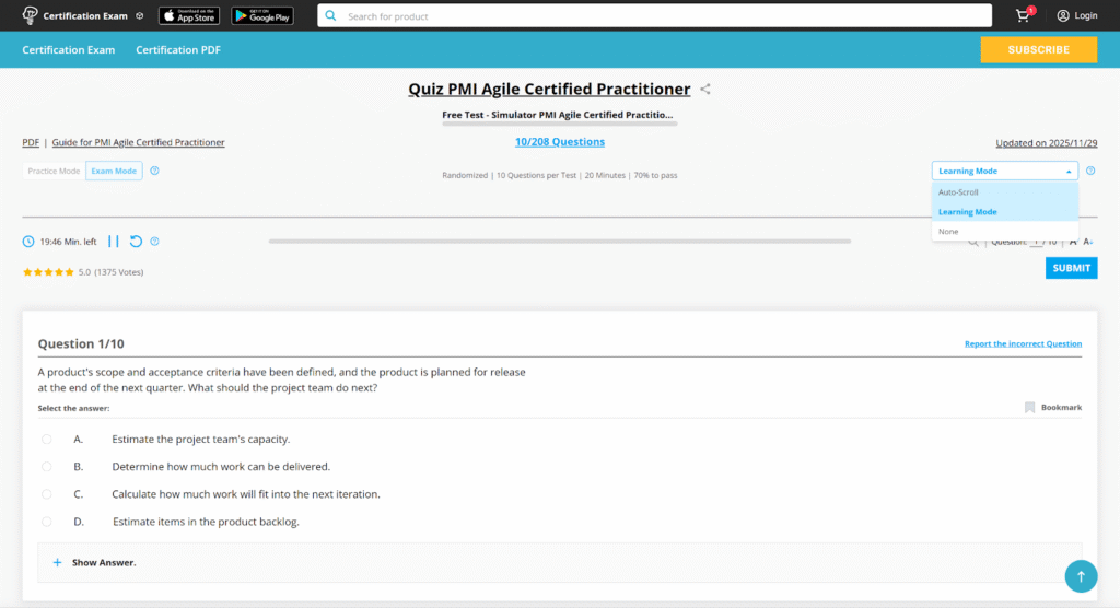 ITExams works in a way that’s quite different from the rest. Its main offering is a community-driven question bank where you can find loads of free PMI-ACP exam prep PDFs and sample questions to test your knowledge on particular topics, which is useful for giving you a taste of what you might be up against.